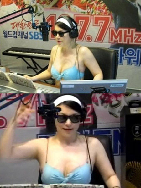 崔花貞之所以要“比基尼出鏡”是因為她曾在廣播中承諾:“如果韓國足球隊在2010年南非世界杯晉級16強,就穿比基尼播音!