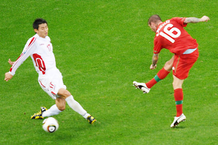 葡萄牙繼續(xù)排出433,不過人員組合上有很大變化,首場的三叉戟只保留了隊長C羅,老將西芒和高中鋒阿爾梅達(dá)得到首發(fā)機會。朝鮮首發(fā)和上場打巴西一模一樣。兩隊只在1966年世界杯1/4淘汰賽有過交鋒,那場朝鮮一度3-0領(lǐng)先但最后是3-5輸球被淘汰。