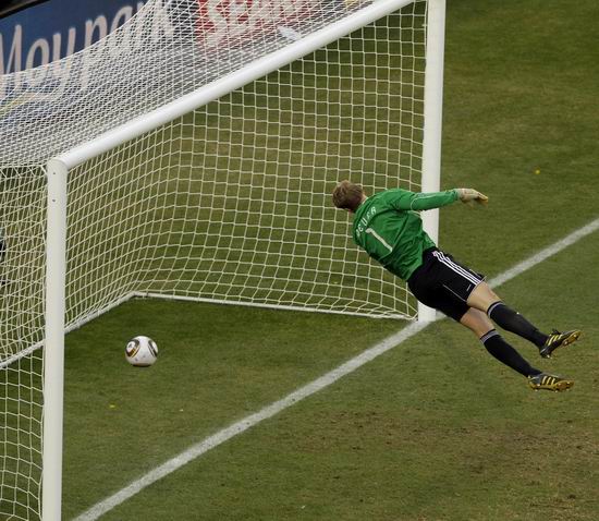 這個門線球誤判令人回想起1966年世界杯決賽英格蘭與德國的經(jīng)典爭議球,赫斯特在加時賽中射門擊中橫梁彈下,裁判判罰進球有效,這么多年來,關于這個球是否越線一直存在爭議,很難有明確的判斷,成為世界杯歷史的最大疑案之一。但和那次“爭議球”相比,本場英德之戰(zhàn)的這個球毫無爭議可言,是一次完全的誤判。