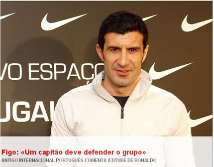 葡萄牙隊(duì)在八分之一決賽中以0比1輸給了西班牙隊(duì),結(jié)束了南非世界杯之旅。賽后,極度失望的葡萄牙隊(duì)長(zhǎng)克里斯蒂亞諾·羅納爾多拒絕了混合區(qū)內(nèi)記者的任何采訪,甚至對(duì)記者吼道:“你去問奎羅斯怎么向葡萄牙的人民解釋吧!”這樣的言論和態(tài)度立刻招來了各界的不滿。葡萄牙“黃金一代”的隊(duì)長(zhǎng)路易斯·菲戈在接受媒體采訪時(shí)狠狠地批評(píng)了C羅。他認(rèn)為,一個(gè)真正的領(lǐng)袖應(yīng)該維護(hù)球隊(duì),勇于承擔(dān)責(zé)任。