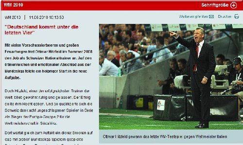 瑞士隊(duì)所在的H組還包括奪冠大熱門西班牙隊(duì)以及洪都拉斯和智利兩支美洲球隊(duì),從小組出線的形勢(shì)來看,瑞士隊(duì)獲得一張16強(qiáng)的門票并不是特別困難的事情。但和西班牙的首場(chǎng)小組賽對(duì)于瑞士隊(duì)來說至關(guān)重要,希茨菲爾德認(rèn)為被貼上熱門標(biāo)簽對(duì)于博斯克的球隊(duì)反而不利。
