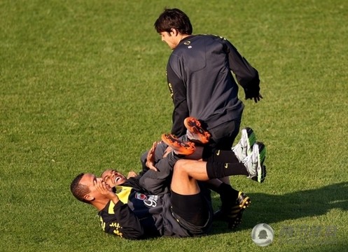巴西隊(duì)備戰(zhàn)訓(xùn)練 卡卡“欺負(fù)” 隊(duì)友