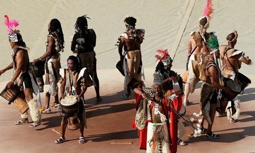 中廣網(wǎng)北京6月11日消息 2010年6月11日,南非世界杯開幕式在約翰內(nèi)斯堡的足球城體育場(chǎng)上演,圖為:非洲特色表演。