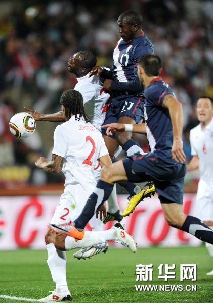 6月12日,英格蘭隊(duì)球員杰拉德(中)攻入一球后與隊(duì)友慶祝。當(dāng)日,在勒斯滕堡舉行的2010年南非世界杯C組比賽中,英格蘭隊(duì)以1比1戰(zhàn)平美國隊(duì)。新華社記者郭勇攝