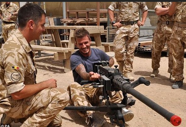 貝克漢姆探秘阿富汗軍營 親自操縱重型武器
