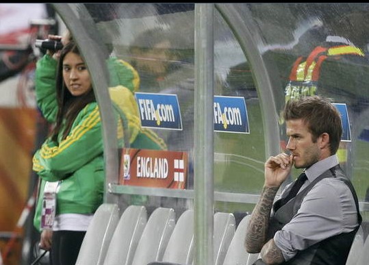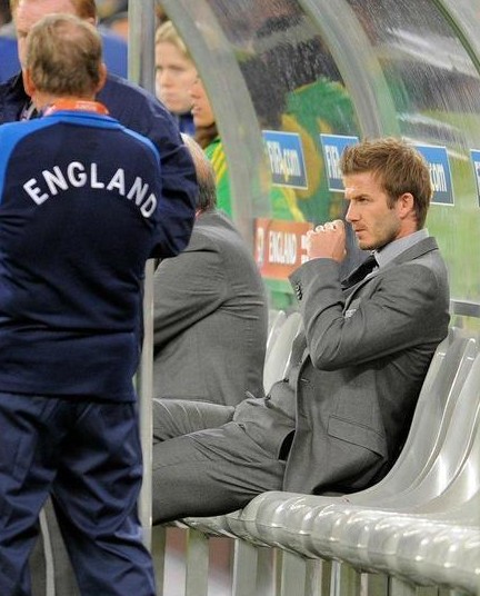 北京時間6月19日凌晨2點30分,2010年南非世界杯小組賽C組第二輪比賽繼續(xù)進行,英格蘭迎戰(zhàn)阿爾及利亞。在替補席上觀戰(zhàn)比賽的小貝依然是焦點。