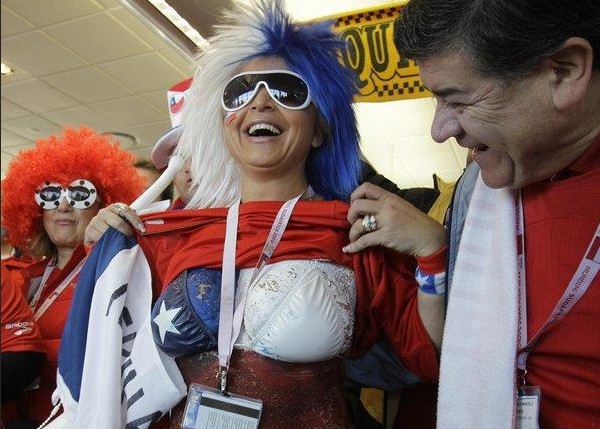 智利VS瑞士球迷造勢 美女胸部畫彩繪助威