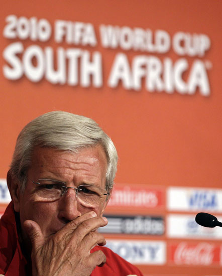 中廣網(wǎng)北京6月24日消息 南非當(dāng)?shù)貢r間6月22日,意大利國家隊在比勒陀利亞附近一體育場內(nèi)進(jìn)行備戰(zhàn)訓(xùn)練。24日,他們會迎來小組賽的下一個對手斯洛伐克隊。圖為主帥里皮若有所思。