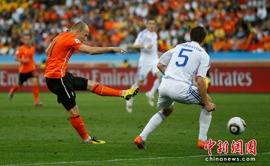 28日晚,南非世界杯1/8決賽第五場比賽在德班球場拉開戰(zhàn)幕,由E組頭名荷蘭隊迎戰(zhàn)F2第二名斯洛伐克。最終,憑借羅本和斯內(nèi)德在上下半場的進(jìn)球,荷蘭隊以2-1淘汰斯洛伐克,闖入八強。