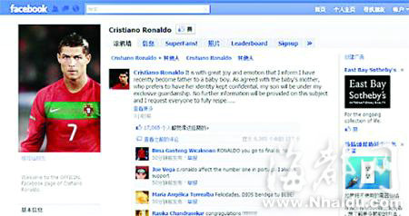 中廣網(wǎng)北京7月6日消息 幾乎是在沒(méi)有任何先兆的情況下,C。羅在facebook其官方主頁(yè)上向公眾宣布了他已經(jīng)成為父親的消息。