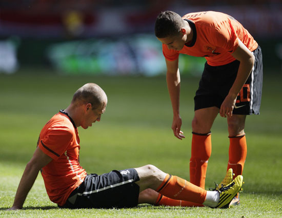 在剛剛結(jié)束的一場(chǎng)熱身賽中,荷蘭在主場(chǎng)6-1戰(zhàn)勝來訪的匈牙利。荷蘭隊(duì)邊鋒羅本在比賽中替補(bǔ)出場(chǎng),打進(jìn)2球幫助球隊(duì)贏得比賽,但在最后時(shí)刻,羅本痛苦倒地,并隨即下場(chǎng)。