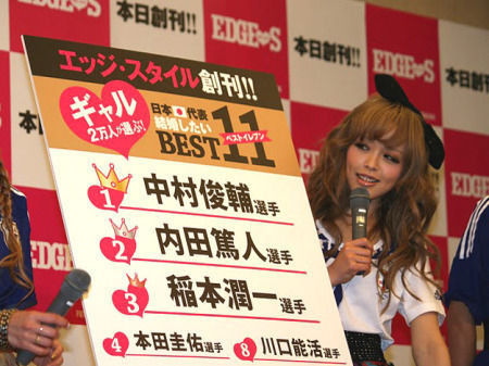 “最想結(jié)婚的日本球員11人”是通過(guò)印刷問(wèn)卷在2萬(wàn)名女性中進(jìn)行的調(diào)查,對(duì)象除了本屆世界杯的日本隊(duì)成員外,其他的日本球員也包括。之前的亞洲一哥--中田英壽以及連續(xù)兩場(chǎng)熱身賽擔(dān)任隊(duì)長(zhǎng)的長(zhǎng)谷部誠(chéng)的落選稍顯意外。