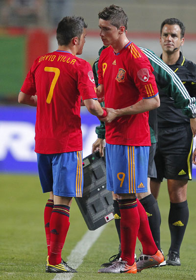 對波蘭的比賽,托雷斯還在替補(bǔ)席上等待了一個多小時,最后,博斯克終于決定將他派遣上場,托雷斯上場時,獲得了全場球迷熱烈的歡呼聲。托雷斯換下的是比利亞,博斯克似乎有意不讓他們同時上場,因?yàn)槔蠋洸幌M吹角蜿?duì)的控球打法遭遇阻礙。進(jìn)球需要很多人的努力,但最后只能由一人來完成臨門一腳。