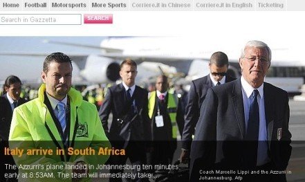 南非當(dāng)?shù)貢r(shí)間6月9日上午8:53分,意大利國(guó)家隊(duì)的乘坐著意大利航空公司的波音777客機(jī),提前10分鐘降落到約翰內(nèi)斯堡機(jī)場(chǎng)。國(guó)家隊(duì)主帥里皮精神飽滿的首先走下了飛機(jī),帶著自己的23名隊(duì)員,在南非特警的嚴(yán)密看護(hù)下,沒(méi)有接受任何采訪直接坐車前往酒店駐地。