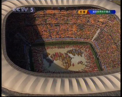 中廣網(wǎng)北京6月11日消息 北京時間6月11日20點,2010年南非世界杯開幕式在南非約翰內(nèi)斯堡足球城體育場隆重舉行。圖為: 巨型非洲地圖亮相。