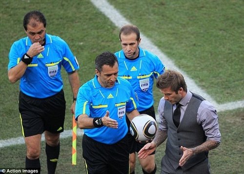 中場(chǎng)結(jié)束時(shí),貝克漢姆一直等在球員通道,和每位下場(chǎng)的隊(duì)友擊掌,看到垂頭喪氣走下來(lái)的蘭帕德,貝克漢姆更是主動(dòng)上前,重重的拍了拍隊(duì)友的肩膀?吹疆(dāng)場(chǎng)主裁準(zhǔn)備走下場(chǎng),一向溫和的貝克漢姆一路追著裁判,嘴中不停的和主裁爭(zhēng)論著上半場(chǎng)對(duì)英格蘭隊(duì)進(jìn)球的誤判。盡管萬(wàn)人迷一臉焦急,然而身旁的主裁卻面無(wú)表情,絲毫不理會(huì)貝克漢姆的辯解。