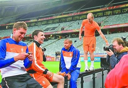荷蘭隊球員賽后留在場內(nèi)慶祝 新華社發(fā)
