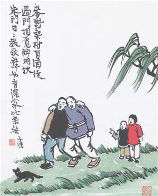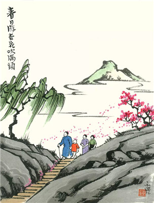 原來這完全是偶然的:昔年我住在白馬湖上,看見人們?cè)诤叿N柳,我向他們討了一小株,種在寓屋的墻角里。因此給這屋取名為“小楊柳屋”,因此常取見慣的楊柳為畫材,因此就有人說我喜歡楊柳,因此我自己似覺與楊柳有緣。假如當(dāng)時(shí)人們?cè)诤叿N荊棘,也許我會(huì)給屋取名為“小荊棘屋”,而專畫荊棘,成為與荊棘有緣,亦未可知。天下事往往如此。