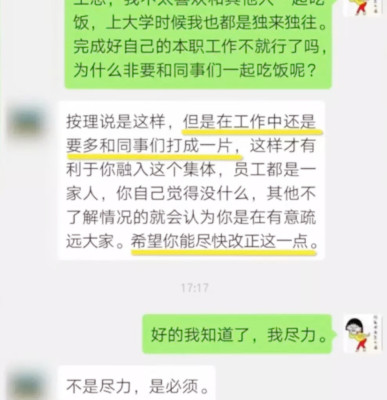 不一起吃飯,長(zhǎng)時(shí)間容易被孤立,就跟上學(xué)是一樣,這不是公司不公司,而是相處之道。