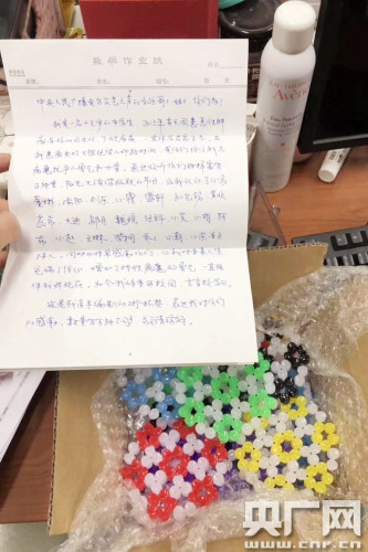 寫信的孩子叫司濟(jì)瑋,根據(jù)信中提及的主持人名字,他收聽廣播至少已有5年的時(shí)間。隨信而來的還有一個(gè)小包裹,里面花花綠綠的,是他親手編制的28個(gè)杯墊。