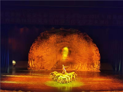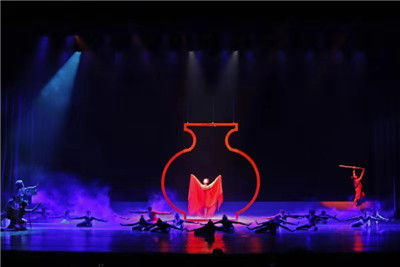 此次演出共有“坭之興”、“火之熎”、“陶之魂”三個藝術章節(jié)。將廣西壯族文化與中華太極文化相結合,將現(xiàn)代舞與民族特色相融合,以男女舞者的陰陽象征坭興陶之紅白泥,再現(xiàn)坭興陶的“窯變”;以“老藝人”的“摟、揮、轆、挑、榣、光”展示制作坭興陶的工匠精神,演繹了千年坭興陶之制作與“窯變”技藝。不僅如此,在舞蹈創(chuàng)作中還融入了廣西花山壁畫、壯錦布藝、欽州跳領頭等非物質文化元素,為非物質文化遺產傳承保護貢獻了自身力量。