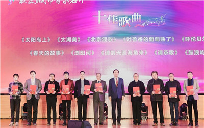 中國(guó)音協(xié)分黨組書記、駐會(huì)副主席、秘書長(zhǎng)韓新安,人民日?qǐng)?bào)媒體技術(shù)股份有限公司董事長(zhǎng)、總經(jīng)理何煒為入選“歌聲唱響中國(guó)”——最美城市音樂(lè)名片優(yōu)秀歌曲獲獎(jiǎng)代表頒獎(jiǎng)