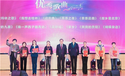 中國(guó)文聯(lián)副主席、中國(guó)音協(xié)主席葉小鋼,河北省政協(xié)副主席、中國(guó)文聯(lián)副主席、中國(guó)雜協(xié)主席、河北省文聯(lián)主席邊發(fā)吉為入選“歌聲唱響中國(guó)”——最美城市音樂(lè)名片優(yōu)秀歌曲獲獎(jiǎng)代表頒獎(jiǎng)