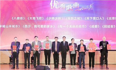中國(guó)文聯(lián)黨組成員、副主席、書記處書記李前光為入選“歌聲唱響中國(guó)”——最美城市音樂(lè)名片十佳歌曲獲獎(jiǎng)代表頒獎(jiǎng)