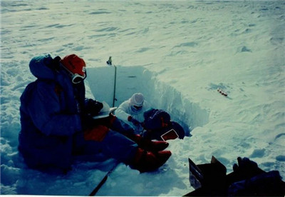 因為南極冰蓋上的降雪不會融化,所以,在年復一年的低溫和重力作用下,雪的密度逐漸增加,最后形成冰川冰。在這個過程中,來自大氣乃至外太空的物質(zhì)都會首先沉降到冰蓋表面雪內(nèi)。因此,只要采集到雪坑和表層雪樣,結合剖面上雪的物理結構變化,再加上對雪樣進行化學分析,可以獲得地球氣候環(huán)境變化的許多定量的信息,這對于冰川學和氣候變化研究有重要意義。秦大河的科考工作就是沿橫穿路線觀測南極冰蓋表面的地形地貌,每55公里挖掘一個1米深的雪坑,觀察記錄雪層剖面,采集雪樣。