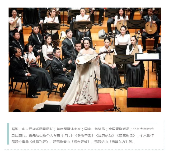 在這里,大家可以欣賞到的《云想花想》是我的好友、擅長寫恢弘作品的王丹紅創(chuàng)作的描寫唐朝文化的琵琶作品。其創(chuàng)作靈感來自于李白著名的詩作《清平調(diào)》,“云想衣裳花想容,春風(fēng)拂檻露華濃!弊髌酚梦赖呐曰男,以及靈動雀躍、跌宕起伏的舞蹈性節(jié)奏,展現(xiàn)了如訴如泣、娓娓道來的深切情思。