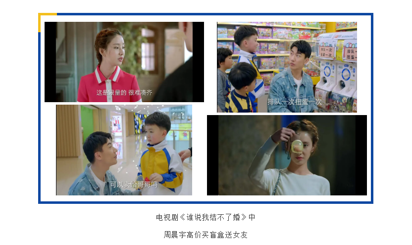 關(guān)于“盲盒”的命名和“配比”:消費(fèi)者一大半買的是“盲”,一小半才買的是“盒”。買盲盒不是單單是為了得到里面可愛的玩偶,更大的樂趣在于拆開盒子、窺探里面的玩偶是不是自己想要的那款的那個(gè)瞬間。