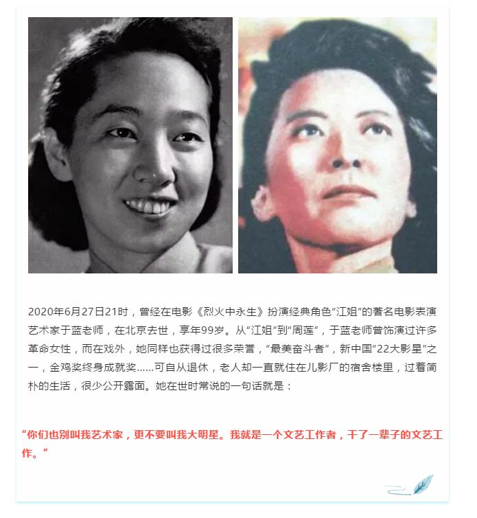 在于藍(lán)飾演之初,夏衍先生就對(duì)她說(shuō):