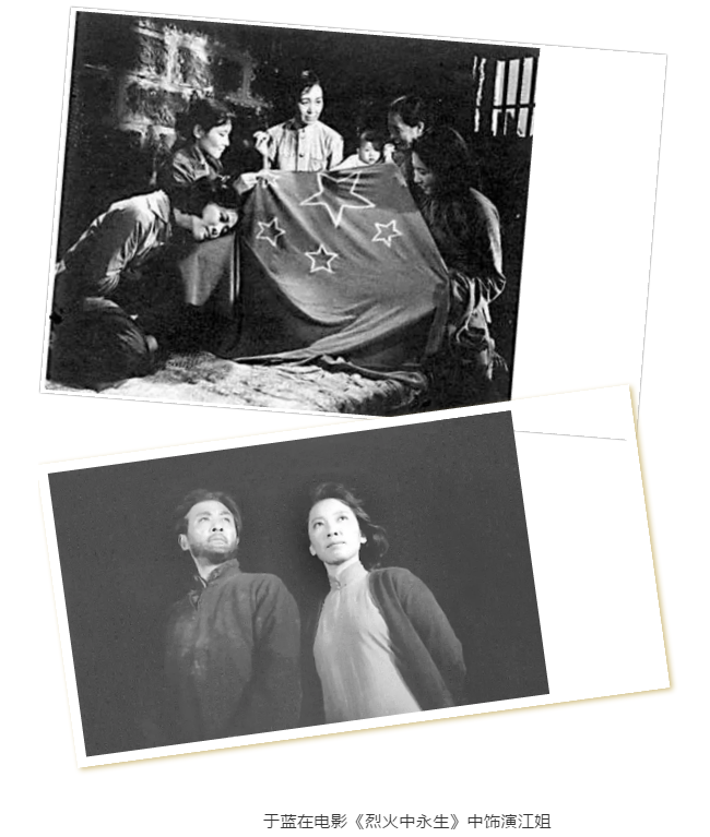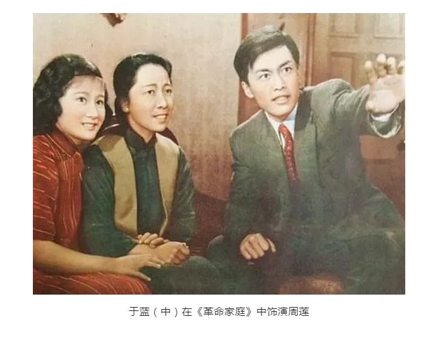 1954年,于藍(lán)進(jìn)入中央戲劇學(xué)院表演訓(xùn)練班參加了兩年的學(xué)習(xí)深造,使自己的表演更上層樓。1960年的《革命家庭》成為她的代表作之一,戲里于藍(lán)與孫道臨合作,成功塑造了由普通家庭婦女成長(zhǎng)為堅(jiān)定革命者的女主人公周蓮。這個(gè)角色要從16歲少女演起,而當(dāng)時(shí)的于藍(lán)已年近不惑,通過(guò)巧妙的情節(jié)設(shè)計(jì)和精湛的表演技巧,年齡的鴻溝得到了很好的彌合。從生活中來(lái),到生活中去,那個(gè)年代里的表演,從來(lái)都是扎根于群眾,在群眾中汲取表演的最佳效果,力圖讓表演更加真實(shí)可感。他們不單單是擁有精湛演技的演員,更是表演藝術(shù)家。也正是因?yàn)椤陡锩彝ァ分械闹苌徯蜗,周總理評(píng)價(jià)說(shuō):“她演了一個(gè)好媽媽!”在一次次成功的角色塑造中,于藍(lán)迅速成長(zhǎng)著,而很快,1965年,于藍(lán)也迎來(lái)了自己電影生涯中的巔峰之作《烈火中永生》。