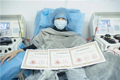 3月2號(hào),距離第一次捐獻(xiàn)血漿整整14天之后,蔡桃英給武漢血液中心成分獻(xiàn)血科主任打電話,詢問(wèn)是否還需要康復(fù)者血漿?得到肯定的答復(fù)后,她再次來(lái)到武漢市血液中心捐獻(xiàn)了400毫升血漿,成為了首位“二連捐漿者”。
