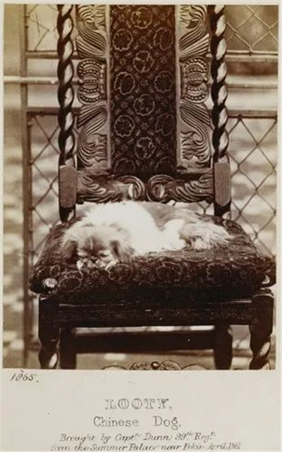 1860年10月18日,英法聯(lián)軍的入侵、圓明園的大火,導(dǎo)致了大量的文物財富開始流散到國外。璐提這只小狗就是當(dāng)時跟隨軍隊,經(jīng)過數(shù)月的奔波后到達(dá)倫敦,又被當(dāng)時的軍官以禮物和戰(zhàn)利品的方式獻(xiàn)給維多利亞女王,最后成為了女王的寵物。
