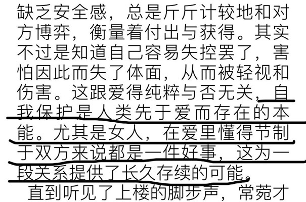 ※ 在感情中越強(qiáng)勢(shì)的人越是缺乏安全感,總是斤斤計(jì)較地和對(duì)方博弈,衡量著付出與獲得。其實(shí)不過(guò)是知道自己容易失控罷了,害怕因此而失了體面,從而被輕視和傷害。