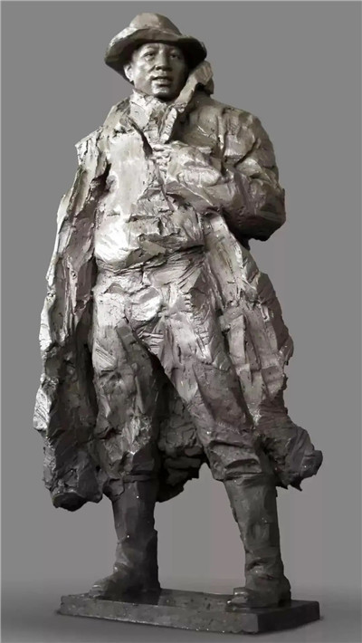 孔繁森是一位將熱血拋灑在藏區(qū)的黨的好兒女,我們的好領(lǐng)導(dǎo)。這件作品塑造了孔繁森穿著藏袍,戴著氈帽,穿著藏靴,一副藏民打扮的黨的干部形象。他風(fēng)塵仆仆地行進(jìn)在藏區(qū)中,部署著他有關(guān)為人民服務(wù)的勾畫(huà)。他的形象是運(yùn)動(dòng)中的生動(dòng)具體的表達(dá);而吳為山老師作為寫(xiě)意雕塑的理論首創(chuàng)者和踐行者,他的藝術(shù)語(yǔ)言又是生動(dòng)寫(xiě)意的。這件以寫(xiě)意雕塑形式來(lái)刻畫(huà)黨的干部形象就非常帶有中國(guó)特色,具有詩(shī)意情懷,昂揚(yáng)積極向上、充滿正能量的宏大氣象。這也使得這些英模形象的藝術(shù)塑造具有經(jīng)典性、象征性、時(shí)代性和永恒性。