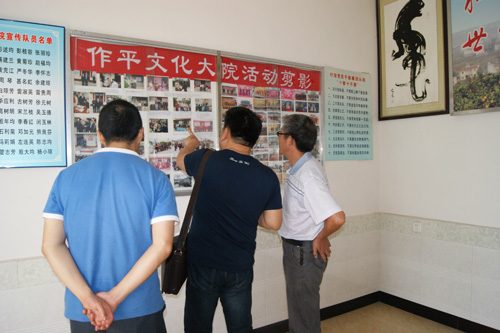 說話間,一位中年男子闖了進來,他就是王作平。說起辦這個文化大院的初衷,王作平說“以前,大家干完農(nóng)活以后就是打牌和看電視,幾乎沒有其他的娛樂方式。”王作平說,雖然自己業(yè)余喜歡寫點快板、順口溜和“三句半”,但卻一直為“知音難覓”而苦惱。王作平領(lǐng)著我們走到屋外,他說“你看我們家西邊那家,幾年前,就因為牌桌上村里的其他人欠了他幾塊錢,他竟然用玻璃杯砸壞了人家的頭,兩家人也因此結(jié)下了梁子!倍@種情況當年村里并不罕見。