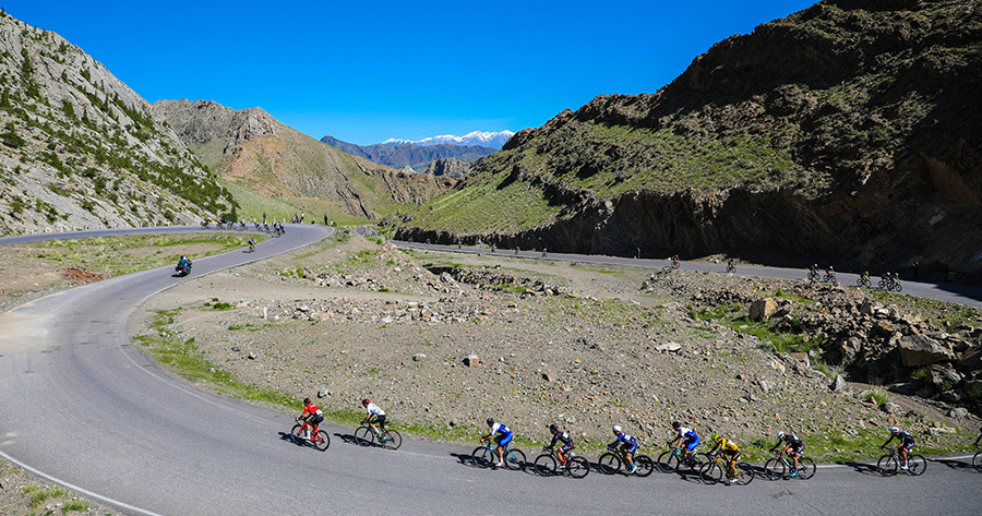 新疆第十三屆環(huán)賽里木湖公路自行車(chē)賽第四賽段(于蘇甫·艾尼 攝)
