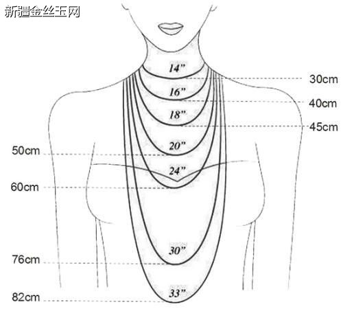 一般女生則是以40-45cm為主, 男生則是以42-48cm為主。項(xiàng)鏈鏈長(zhǎng)標(biāo)準(zhǔn)尺寸見(jiàn)下:
