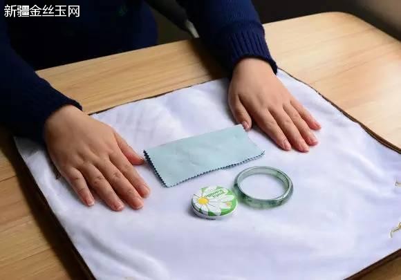首先在佩戴手鐲之前需要準(zhǔn)備(護手霜,一塊干凈的棉布)和一個寬闊平臺(沙發(fā)和較大的桌子都可以)請記得一定要用一塊軟布墊底,主要是為了防止掉在桌上摔壞;