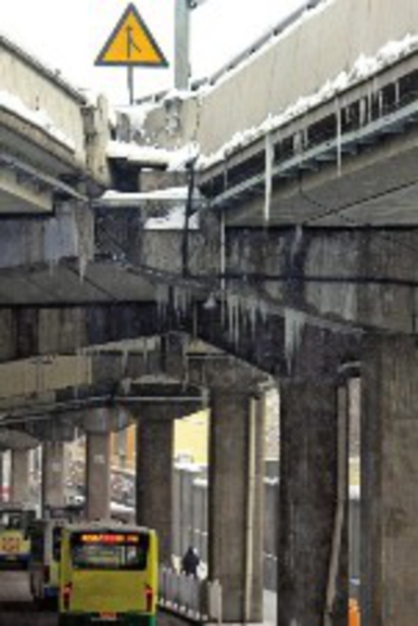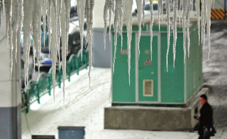 新疆網(wǎng)訊(記者黃杰敏攝影報(bào)道)受連續(xù)多日降雨、降雪天氣影響,烏魯木齊部分路段高架橋下、房檐等結(jié)出冰錐。相關(guān)部門提醒市民,近期出行注意高處墜冰,盡量遠(yuǎn)離結(jié)著冰錐的建筑物。