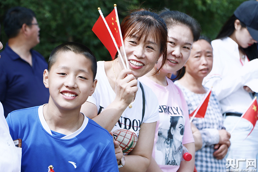 比賽沿線群眾為參加比賽的車手加油鼓勁(央廣網(wǎng)見習(xí)記者 王天浩 攝)