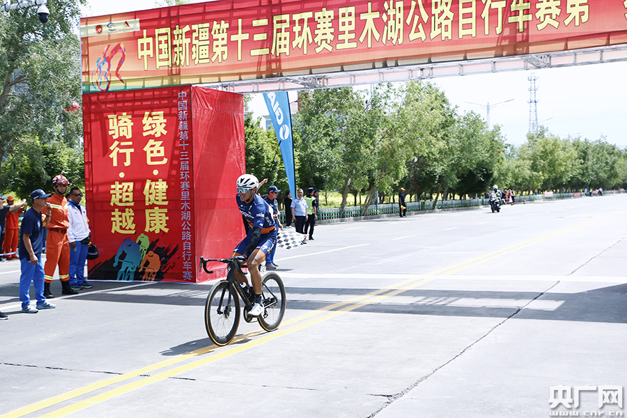 來自上海的邁金朝盟體育車隊選手劉祝慶奪得第一賽段冠軍(央廣網(wǎng)見習(xí)記者 王天浩 攝)