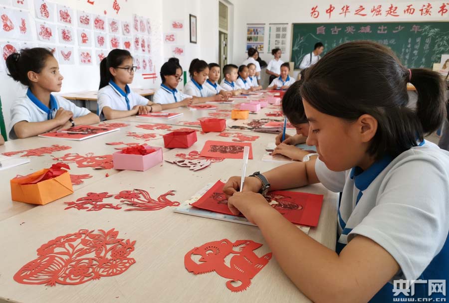 一堂生動的剪紙課正在喀什市東城第三初級中學進行 央廣網(wǎng)記者吳卓勝 攝