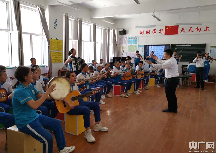 走進喀什市東城第三初級中學,同學們正樂器合奏,洋溢著歡樂氛圍。 央廣網(wǎng)記者吳卓勝 攝