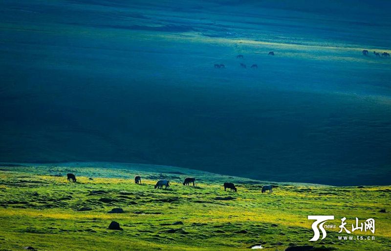 天山網訊(記者易雄文 通訊員張輝攝影報道)7月的塔城地區(qū)額敏縣孟布拉克草原迎來一年中最美的日子,原生態(tài)的草原、雪峰景觀吸引了大批攝影愛好者。
