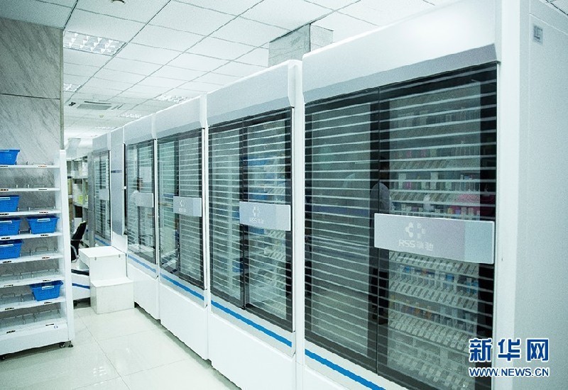 克拉瑪依市中心醫(yī)院藥房內(nèi),一排排封閉式藥柜擺放整齊。新華網(wǎng) 茹斯坦攝