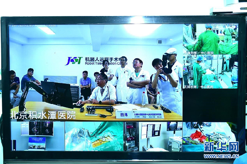 北京積水潭醫(yī)院骨科專家田偉同時操控天津市、張家口市、克拉瑪依市3家異地醫(yī)院的骨科機器人實施遠程手術(shù)。高鵬攝