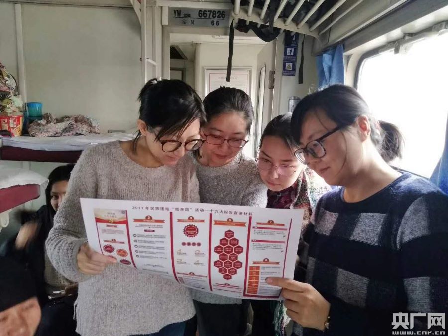 “民族團(tuán)結(jié)一家親”列車上學(xué)習(xí)十九大報(bào)告